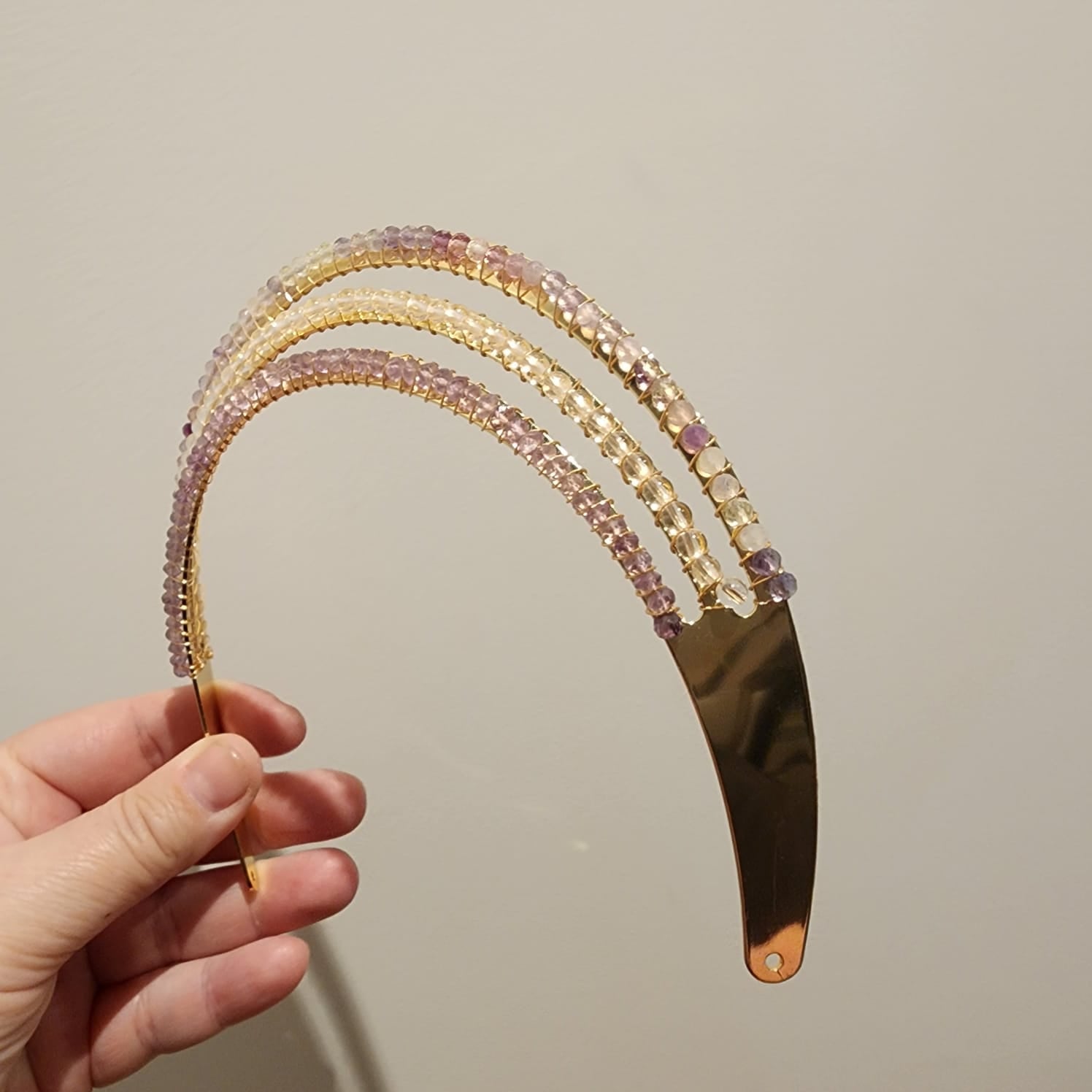 - Headband made from wire wrapped gemstones on an adjustable, plated, stainless steel crown base. Wire is high grade enamel coated copper.