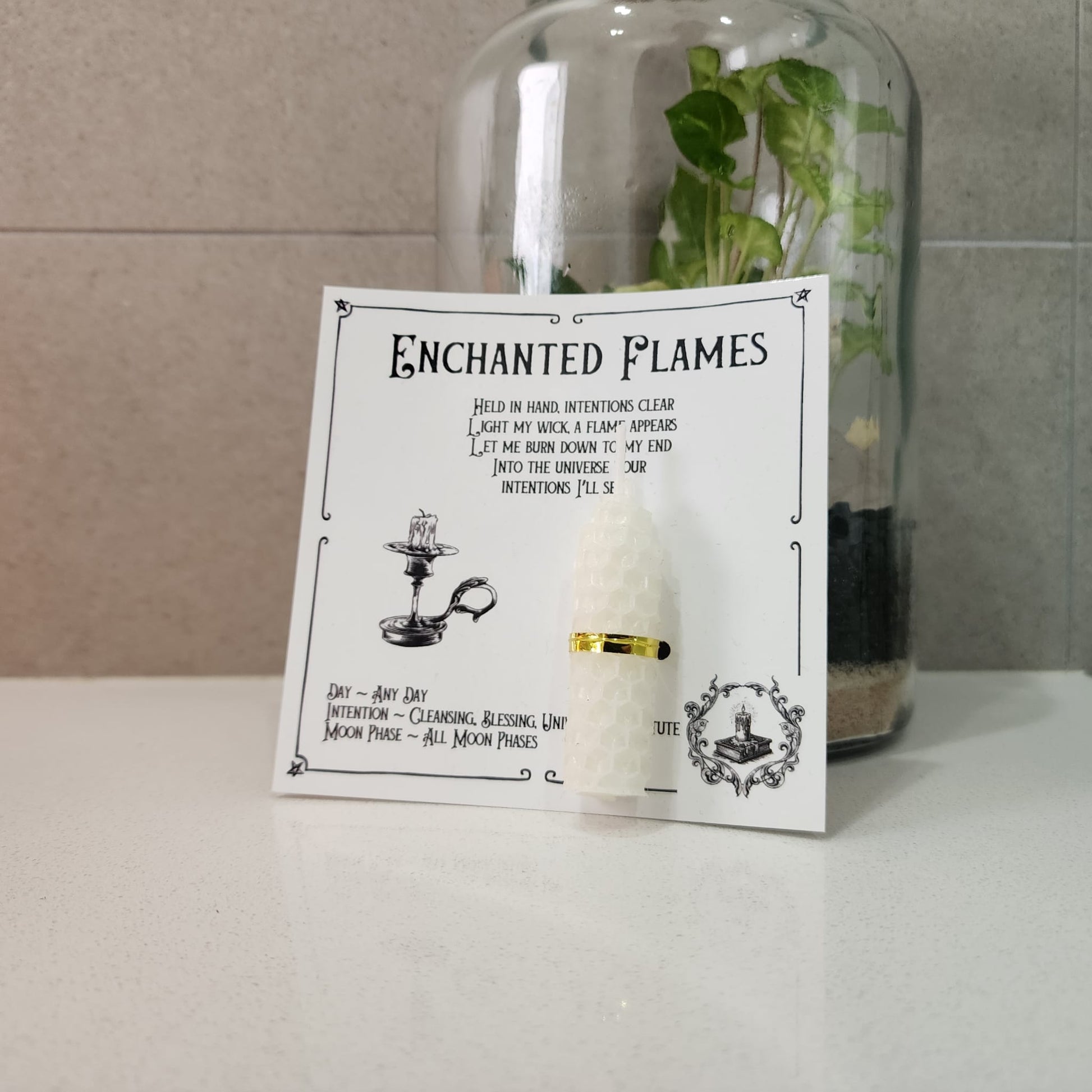 Each Enchanted Flame is paired with a beautifully illustrated intention card, guiding you on the ideal day, moon phase, and focus for your ritual. From love and confidence to protection, abundance, healing, and grounding, there is a flame for every season of life.