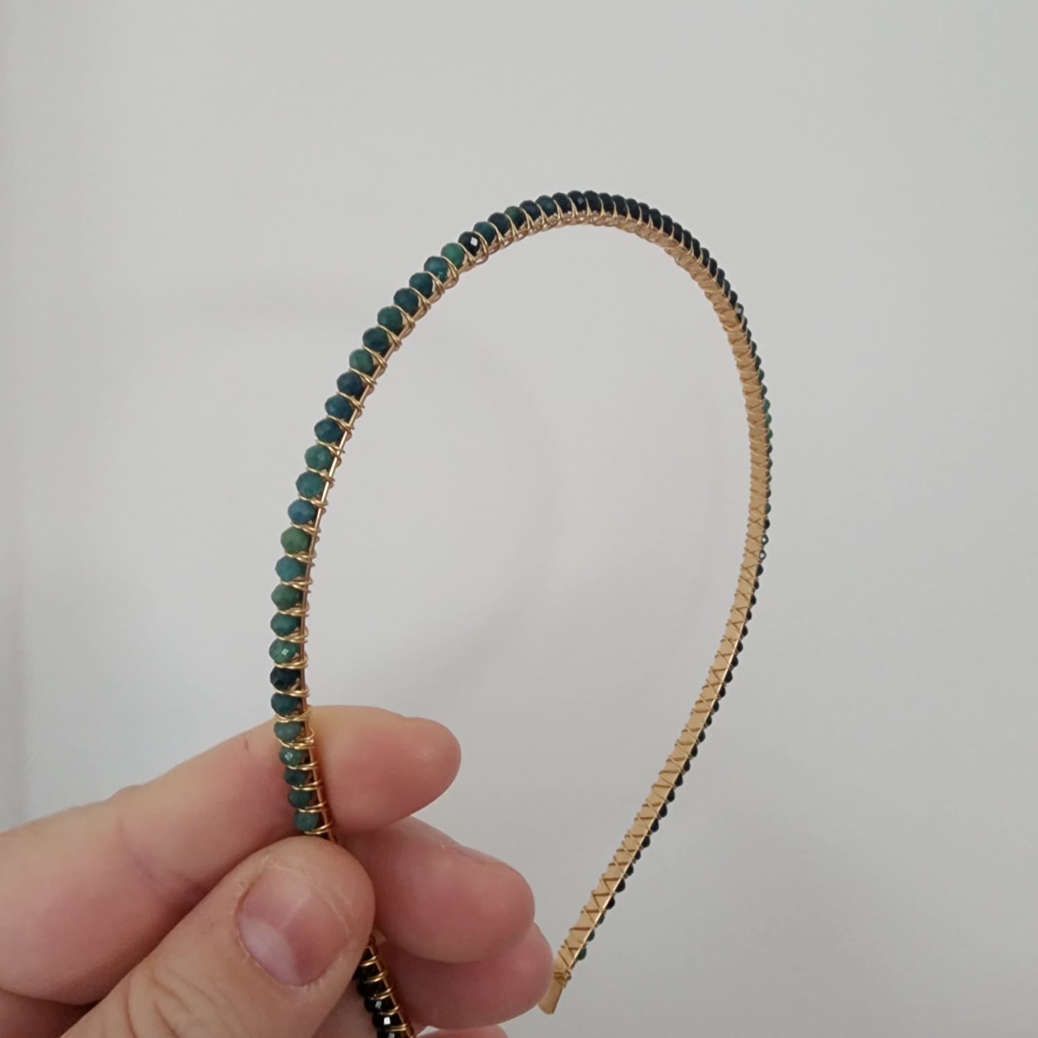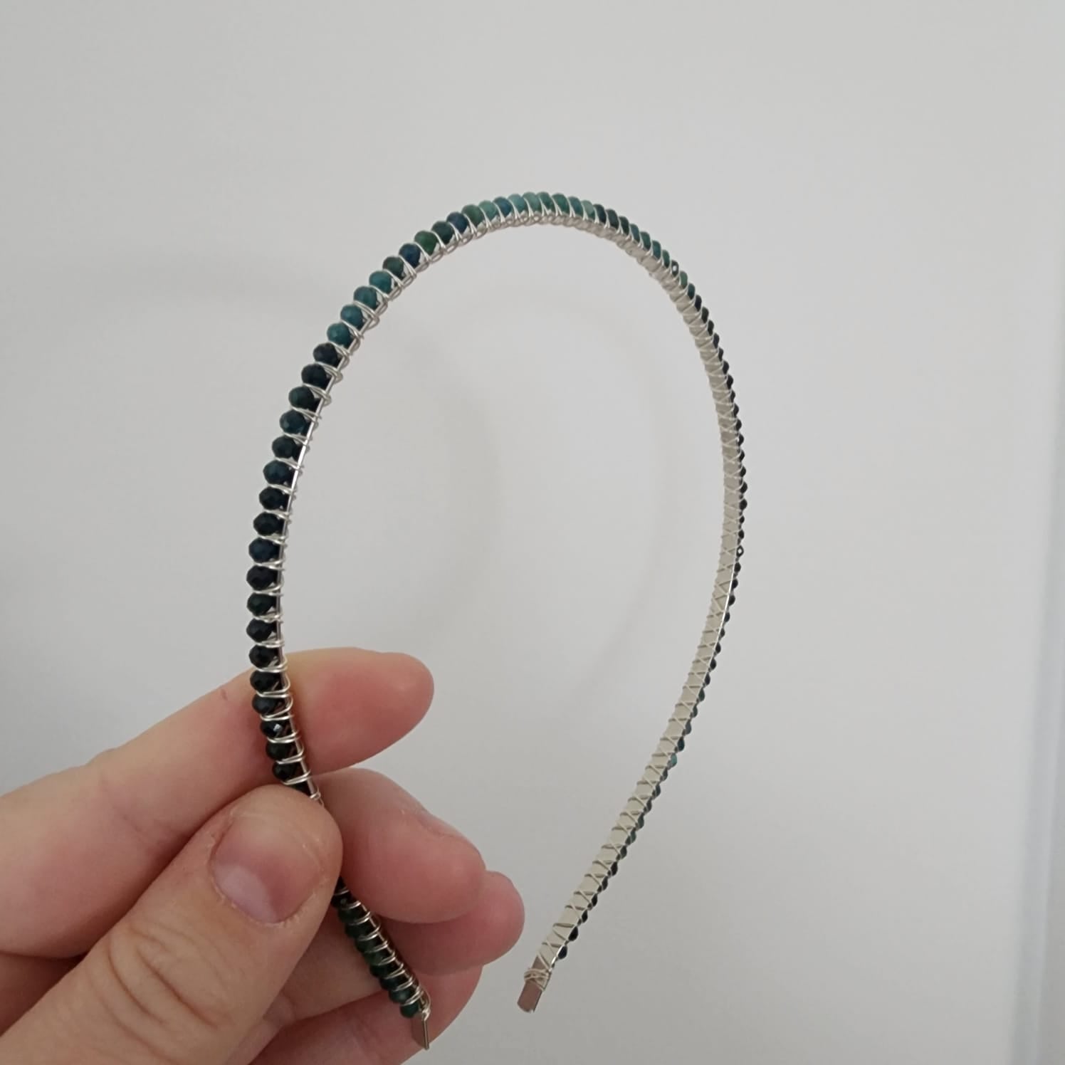 - Headband made from wire wrapped gemstones on a standard adult sized, plated, stainless steel headband that is 4mm wide. Wire is high grade enamel coated copper.