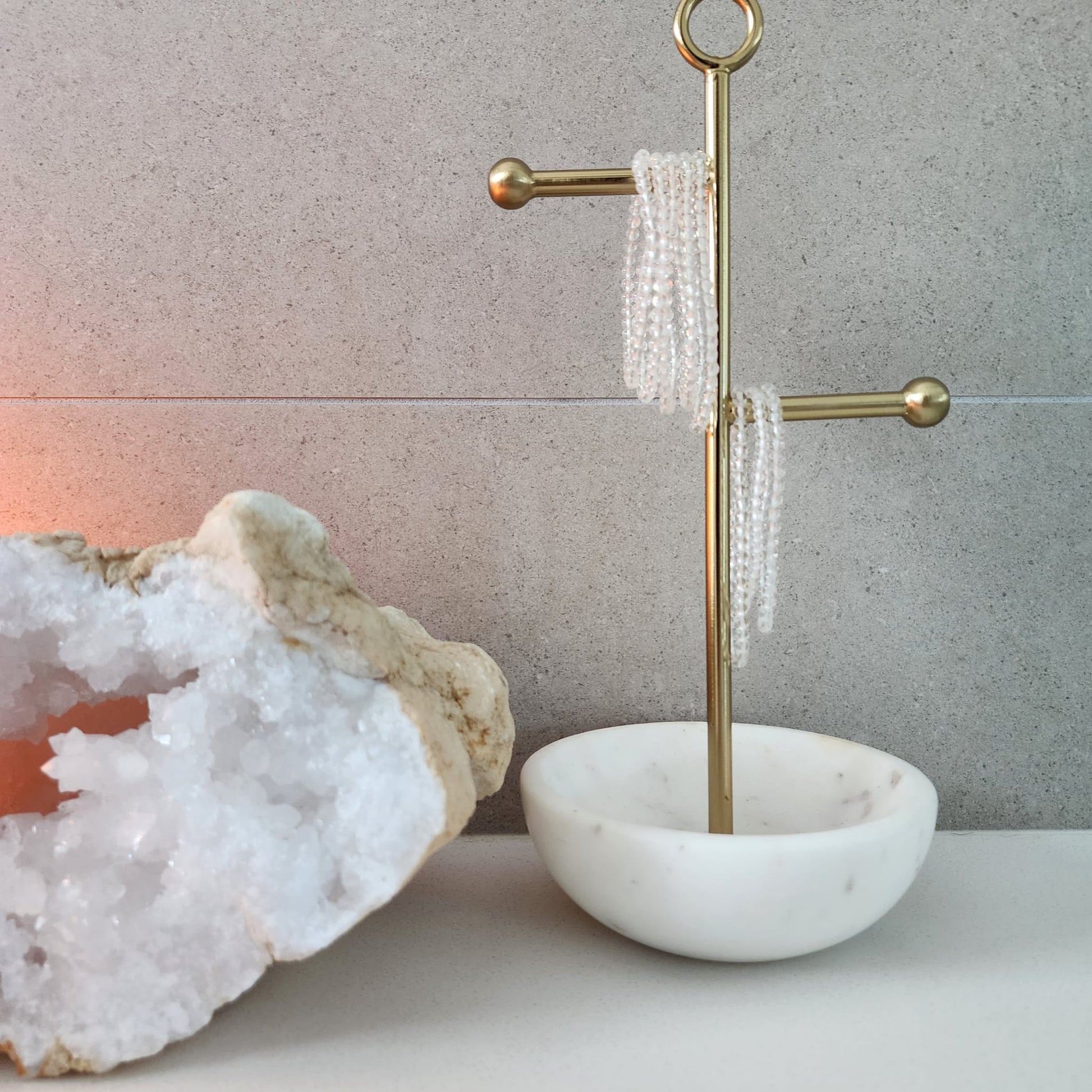 Clear quartz magnifies energy and intention. It supports mental clarity, spiritual awareness and enhances the properties of any stones you wear alongside it.