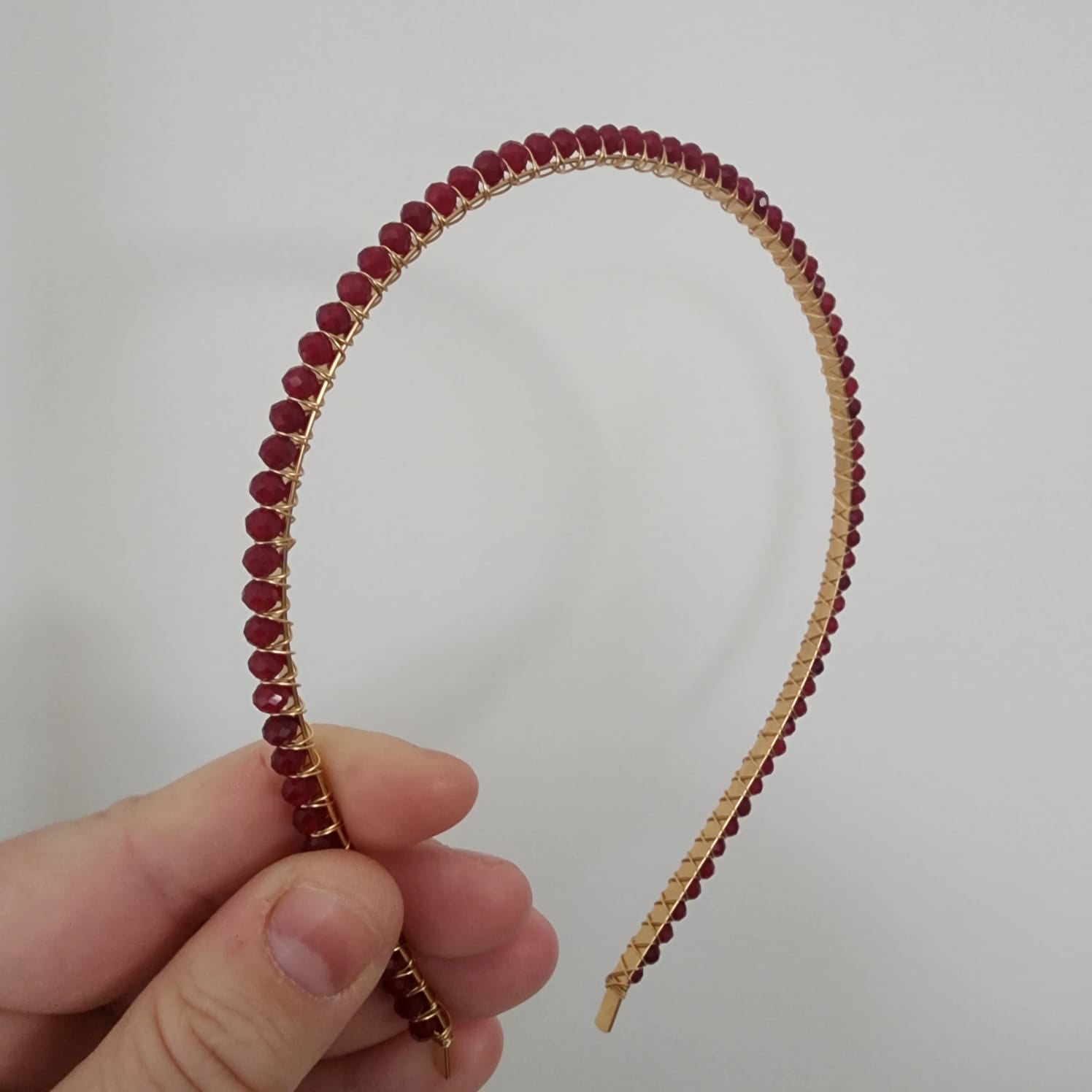 - Headband made from wire wrapped gemstones on a standard adult sized, plated, stainless steel headband that is 4mm wide. Wire is high grade enamel coated copper.