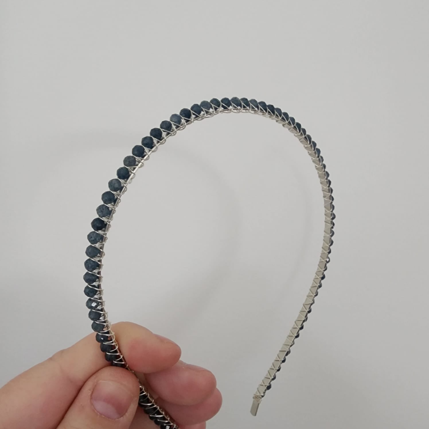 - Headband made from wire wrapped gemstones on a standard adult sized, plated, stainless steel headband that is 4mm wide. Wire is high grade enamel coated copper.