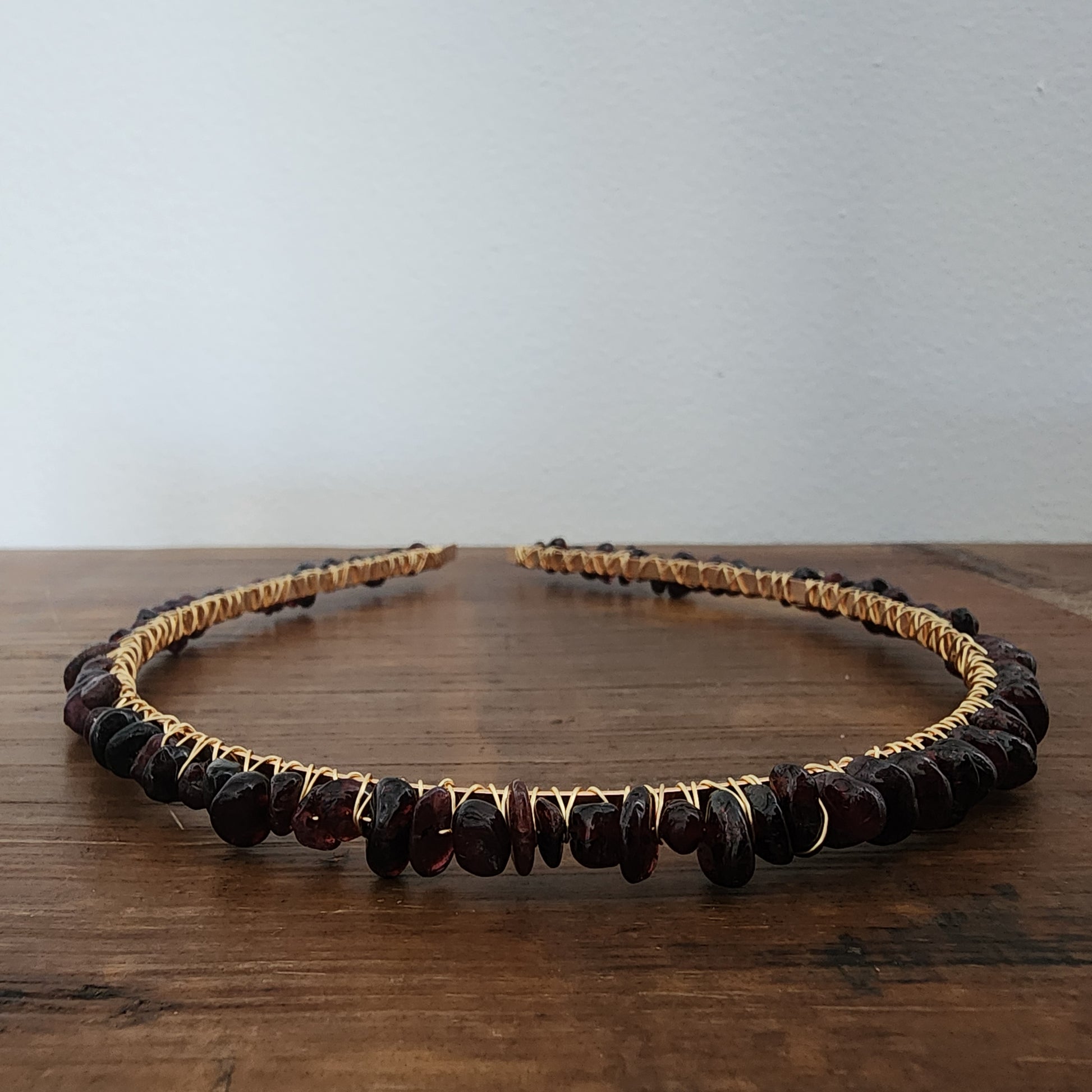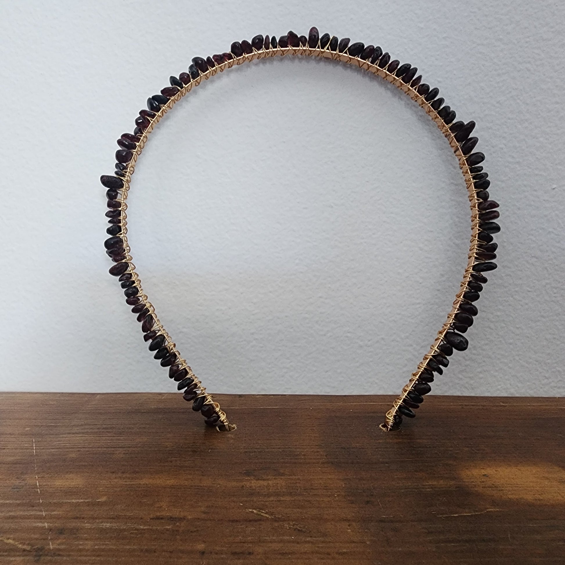 Whether dressing up for a special occasion, or just for everyday wear, our Garnet Gemstone Headband adds instant glamour and sophistication to any outfit. Made from wire wrapped gemstones on a headband band, this piece is handcrafted in Australia. Garnets have been known throughout history as the stone of passion: they encourage sensuality and affection; inspire love, loyalty and commitment; support clear communication of feelings between partners; express one’s inner desires; and aid the healing process.