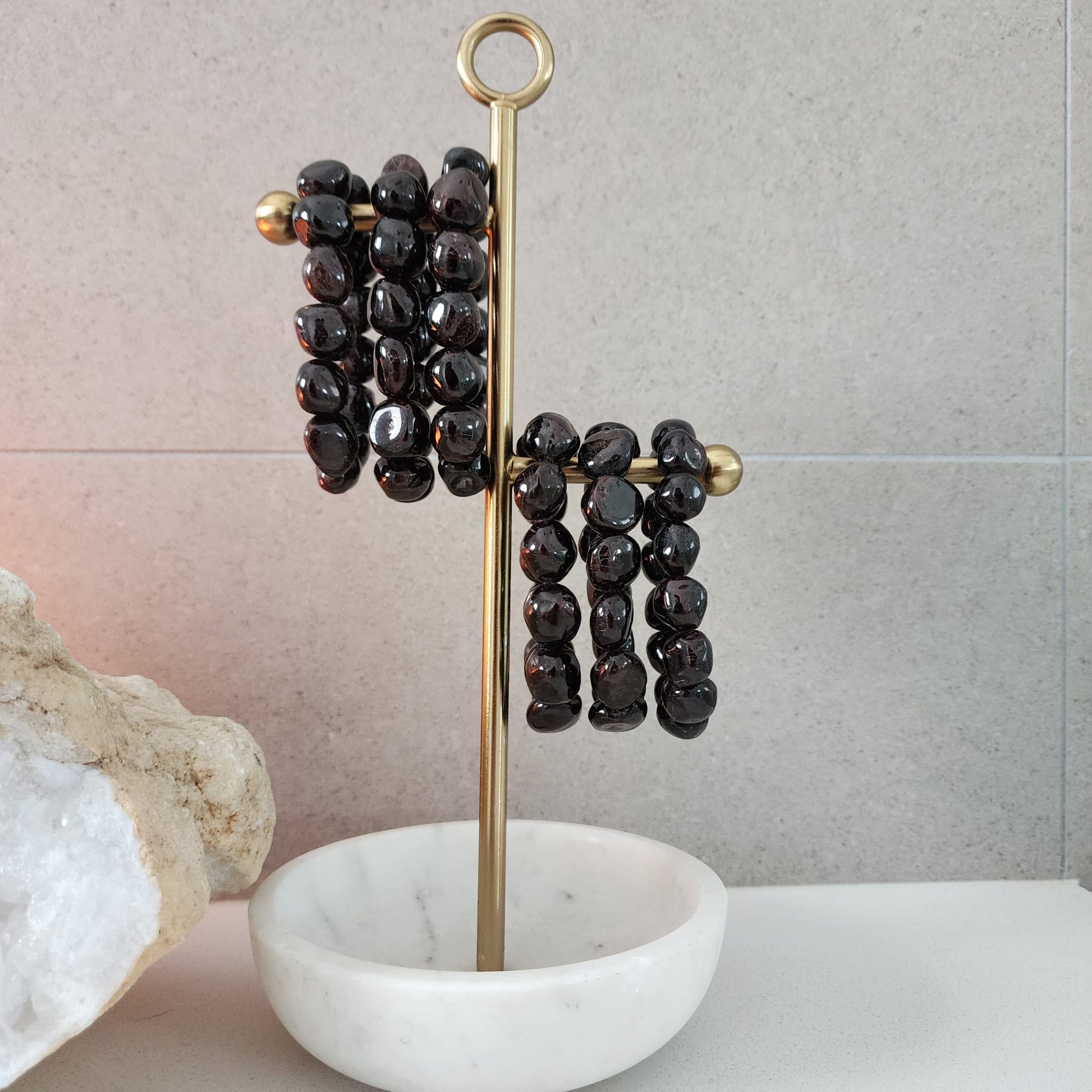 - Stretchy bracelet made from drilled gemstones on stretch thread