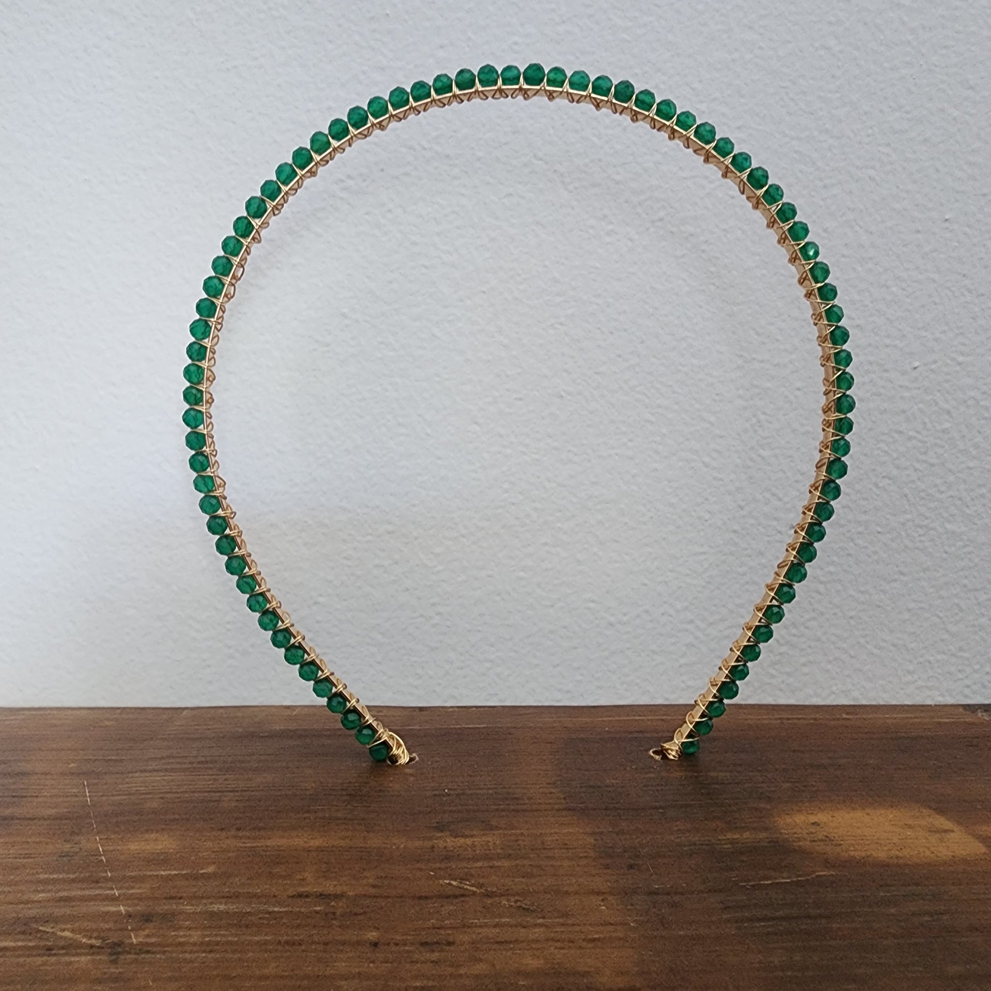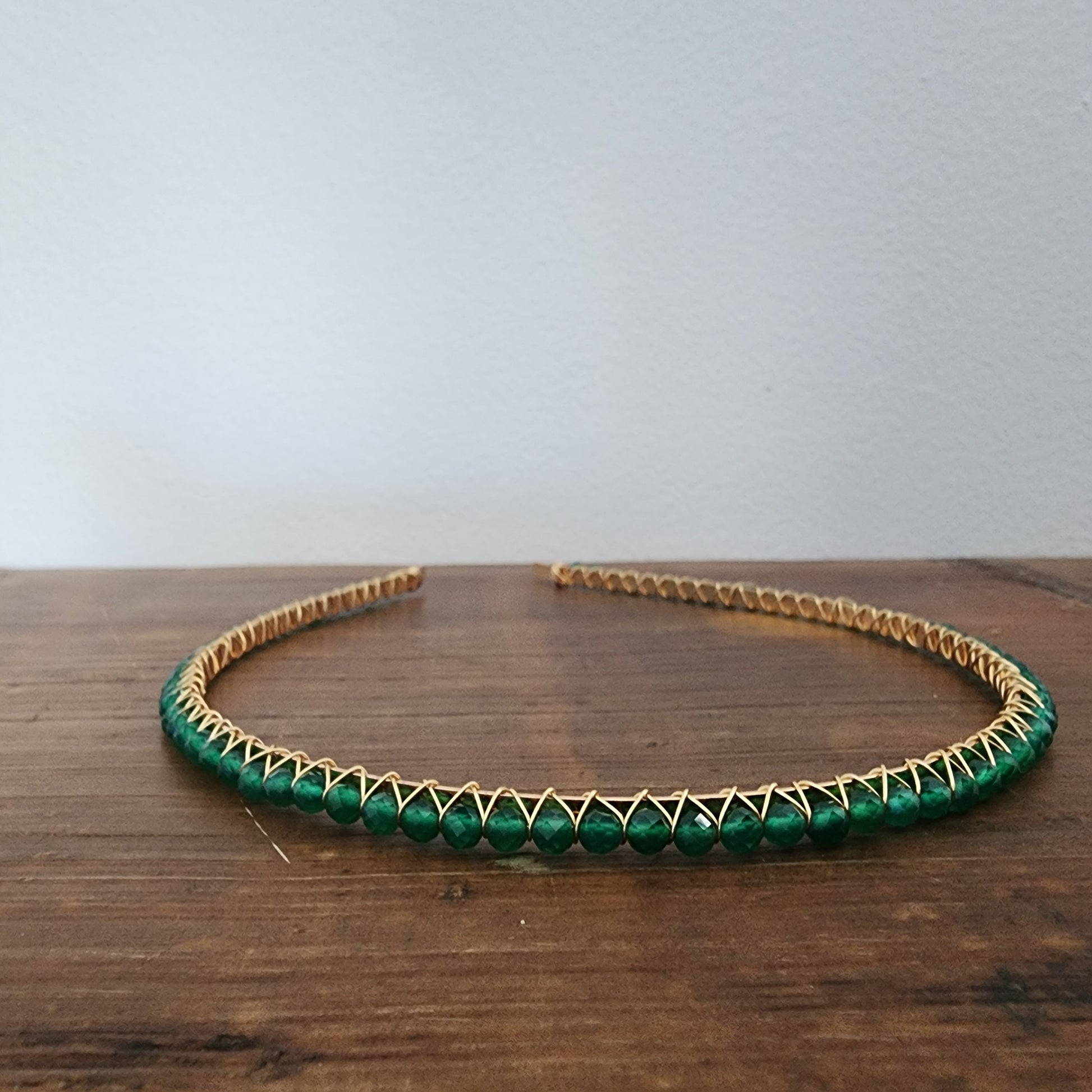 - Headband made from wire wrapped gemstones on a standard adult sized, plated, stainless steel headband that is 4mm wide. Wire is high grade enamel coated copper.