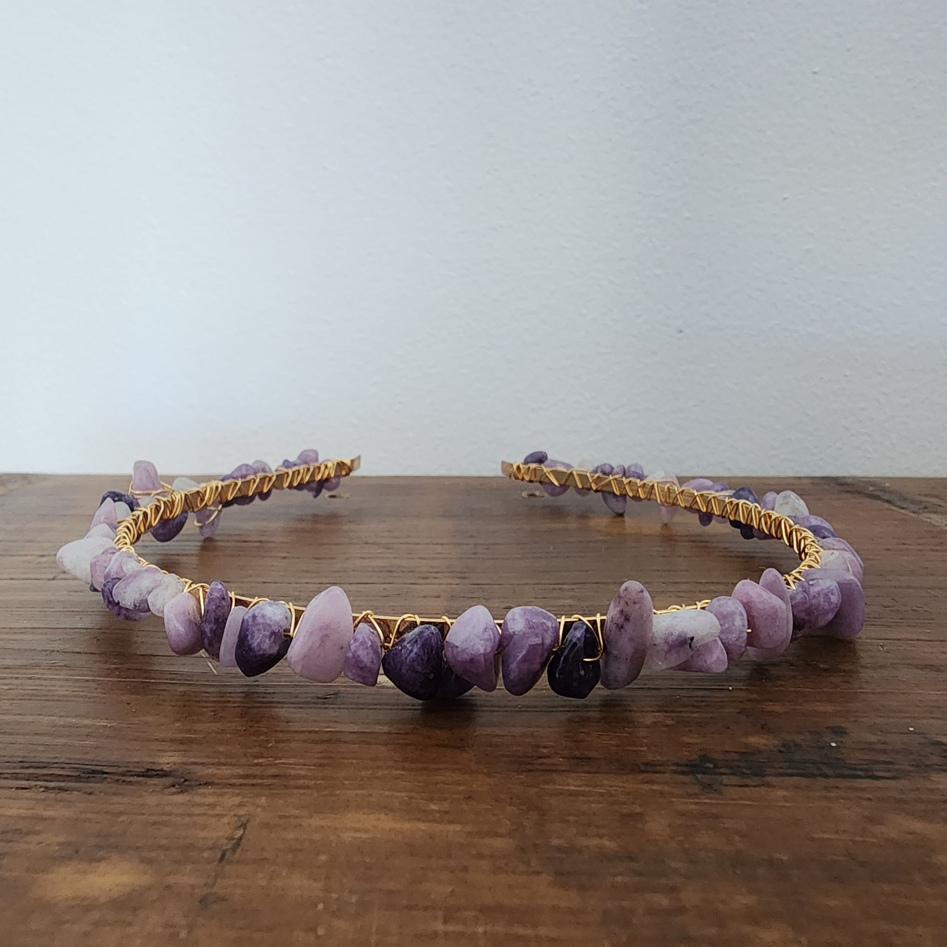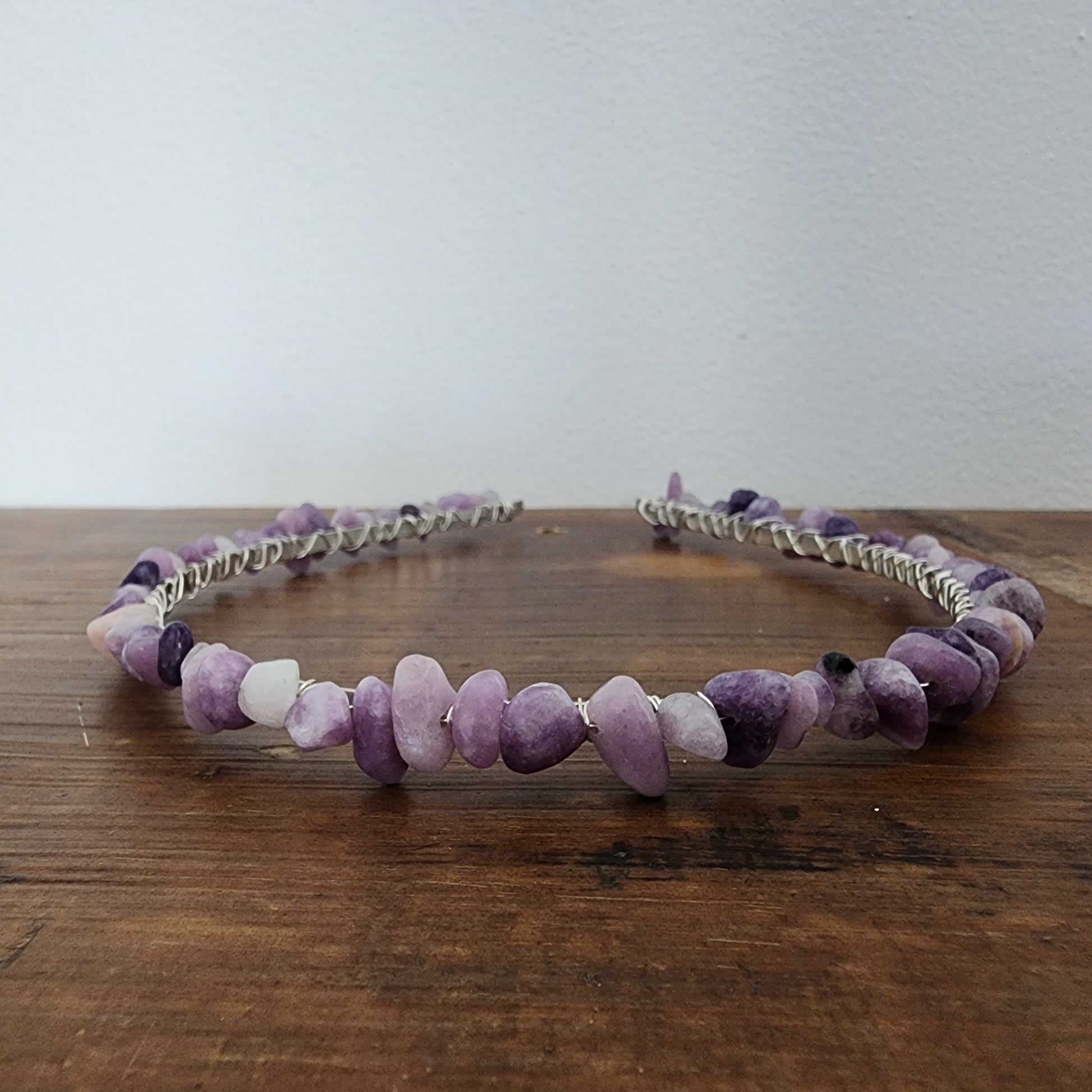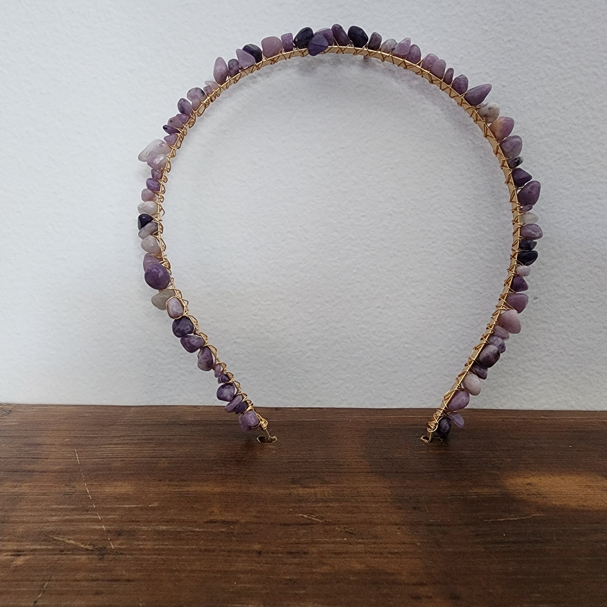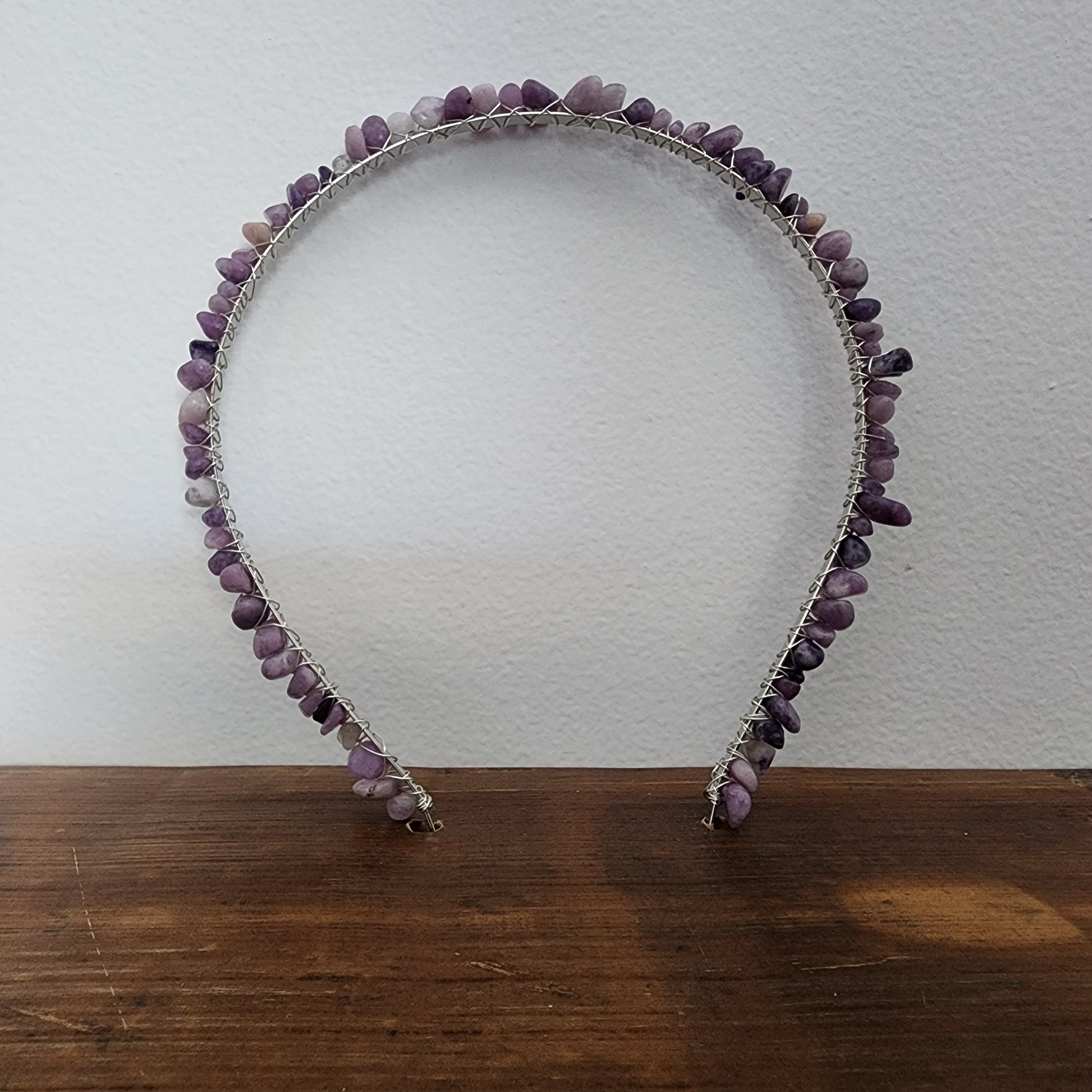 - Headband made from wire wrapped gemstones on a standard adult sized, plated, stainless steel headband that is 4mm wide. Wire is high grade enamel coated copper.