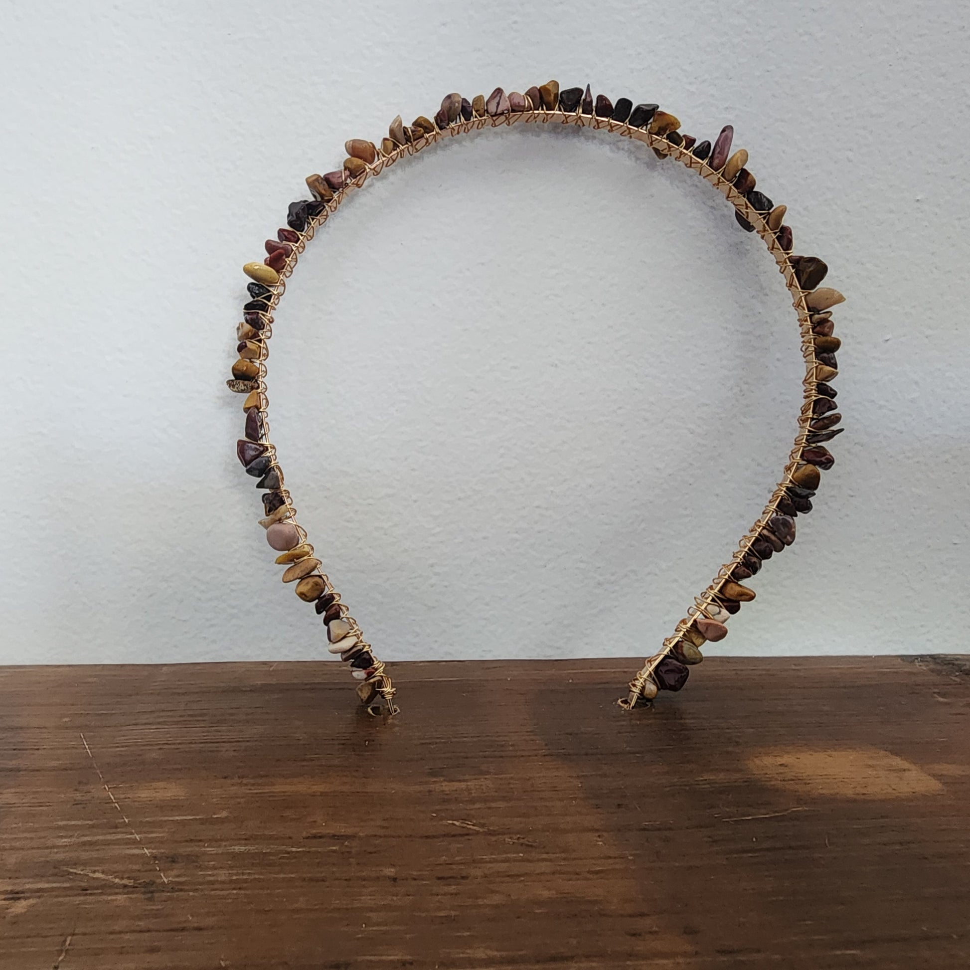 - Headband made from wire wrapped gemstones on a standard adult sized, plated, stainless steel headband that is 4mm wide. Wire is high grade enamel coated copper.