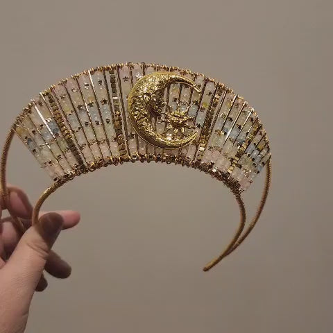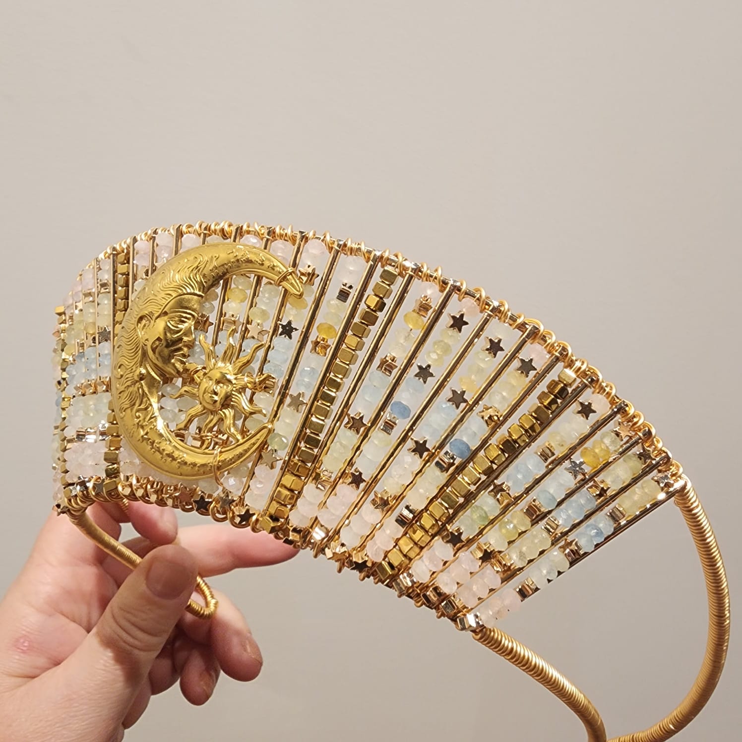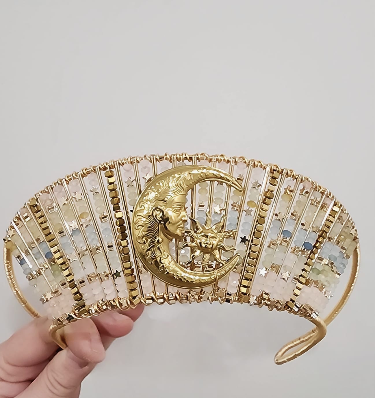 - Headband made from wire wrapped gemstones on an adjustable, plated, stainless steel crown base. Wire is high grade enamel coated copper.
