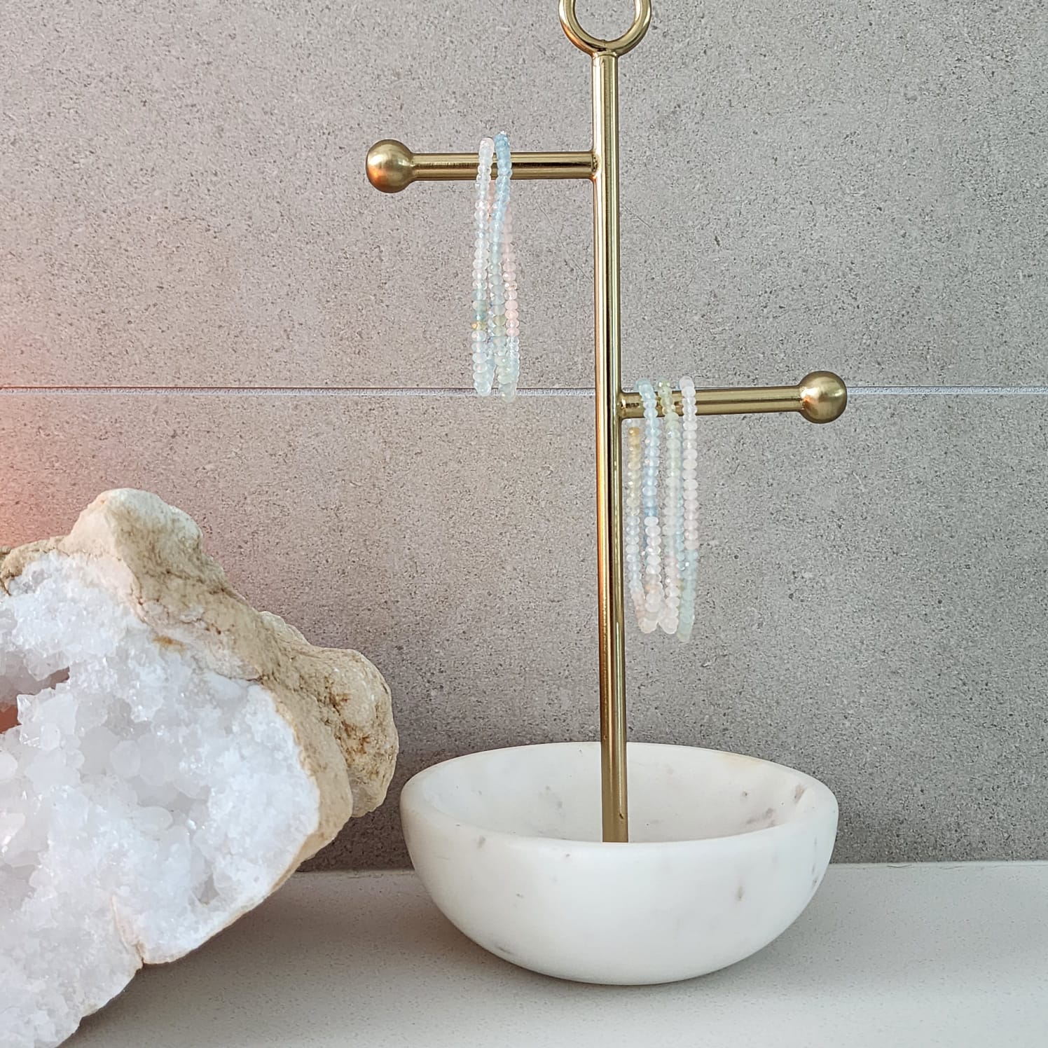 Featuring beautifully faceted morganite stones, this piece catches the light with a soft, luminous glow. Morganite carries a gentle yet powerful heart centred energy, encouraging compassion, self worth and balanced relationships. This is the bracelet you wear when you want to feel open, graceful and quietly confident.