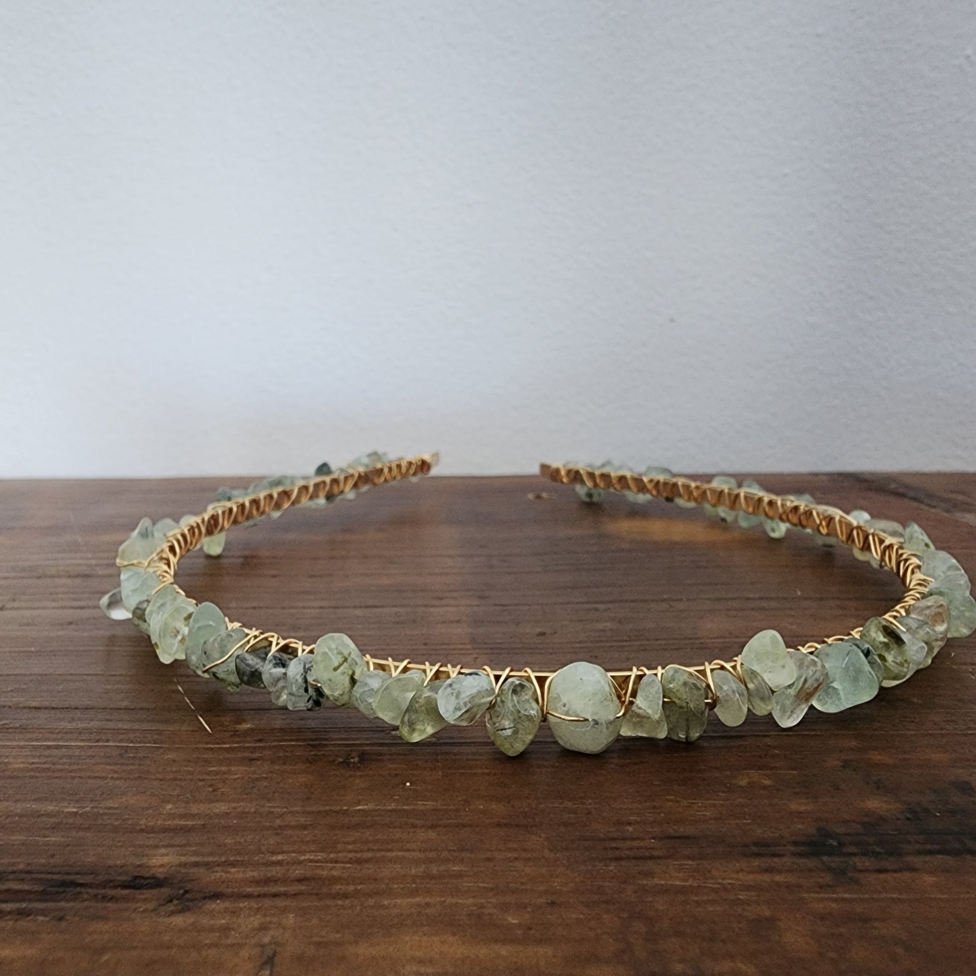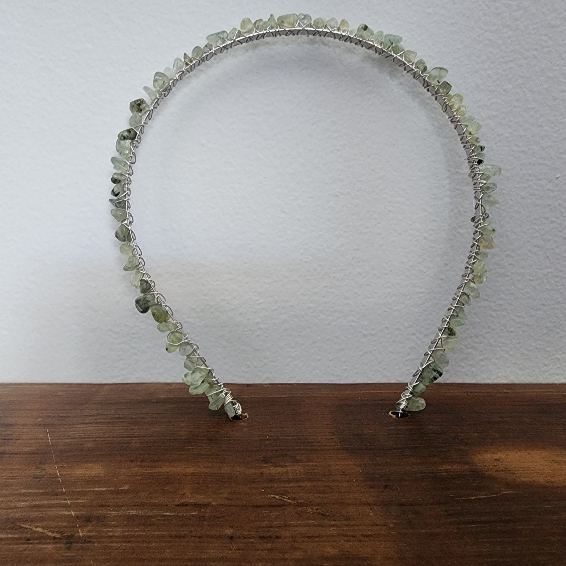 - Headband made from wire wrapped gemstones on a standard adult sized, plated, stainless steel headband that is 4mm wide. Wire is high grade enamel coated copper.