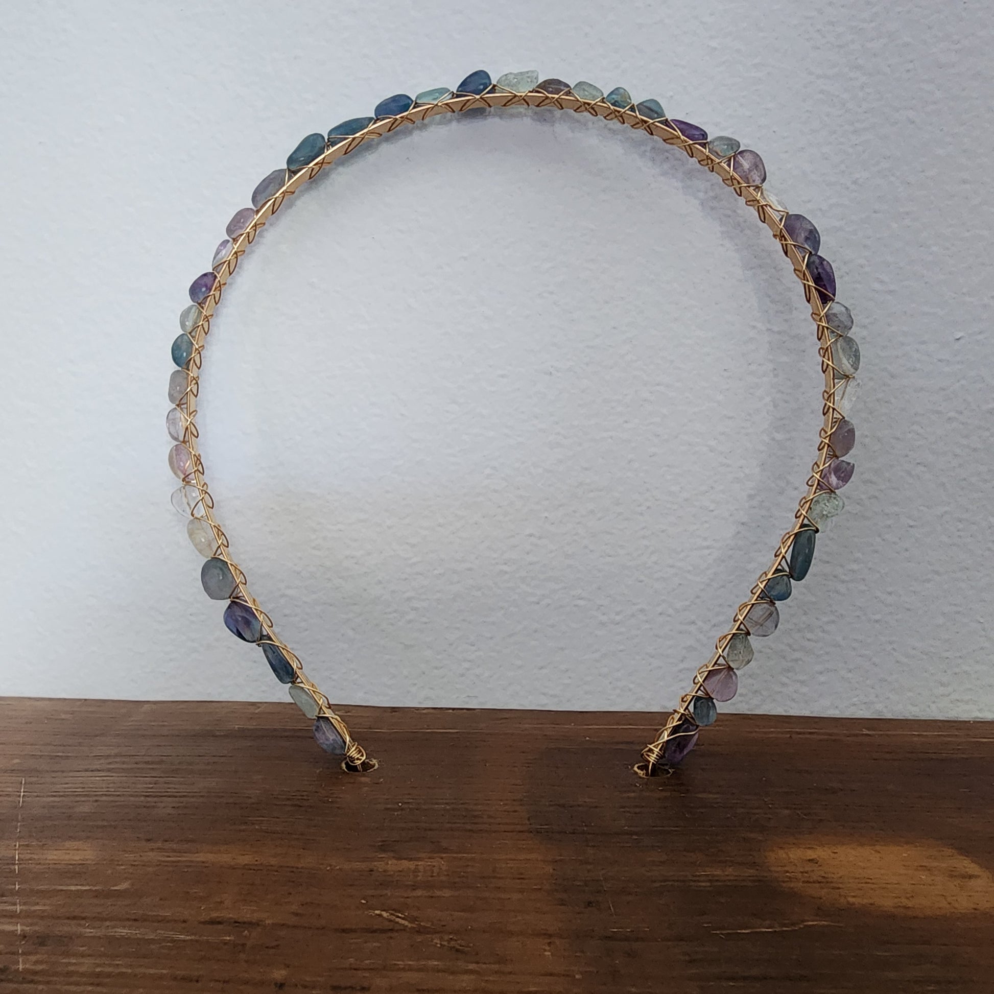 - Headband made from wire wrapped gemstones on a standard adult sized, plated, stainless steel headband that is 4mm wide. Wire is high grade enamel coated copper.