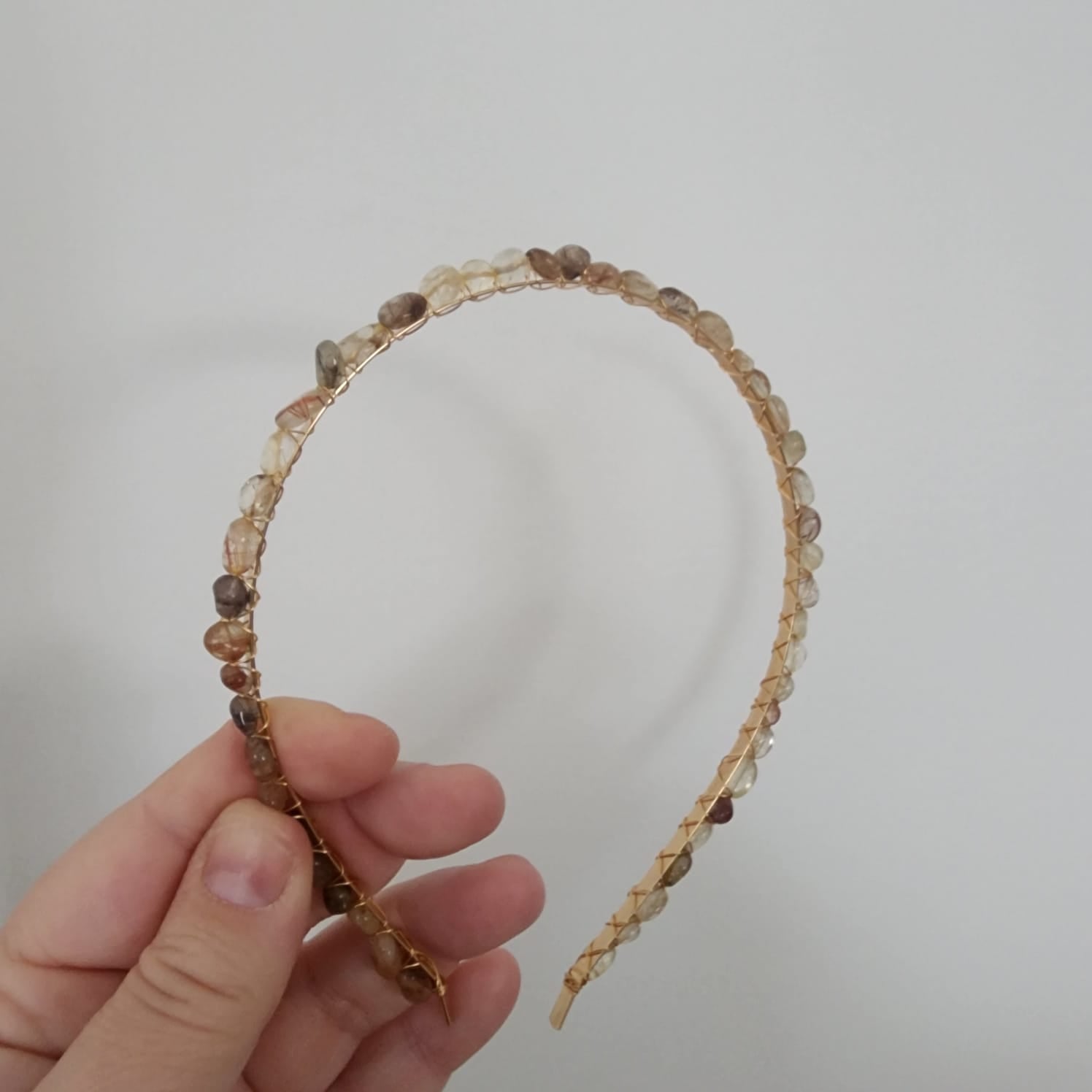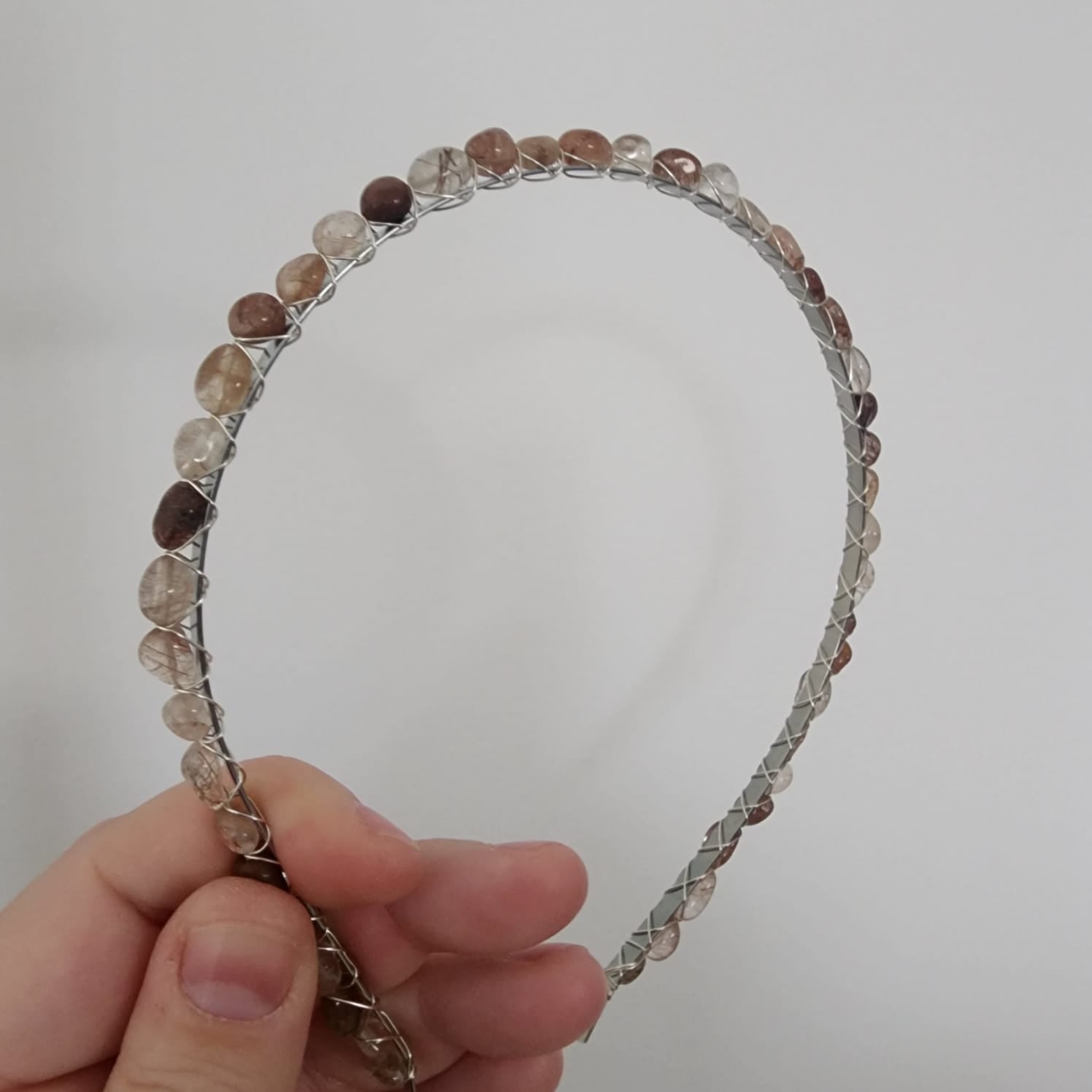 - Headband made from wire wrapped gemstones on a standard adult sized, plated, stainless steel headband that is 4mm wide. Wire is high grade enamel coated copper.