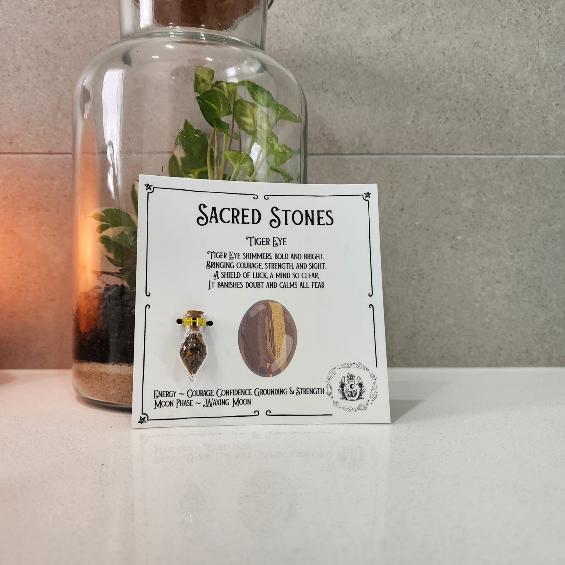 Our Sacred Stones are hand-filled mini glass bottles, each containing carefully selected crystal chips chosen for their energetic qualities and symbolic meaning. Designed as modern talismans, these little bottles hold ancient wisdom, lunar magic, and intention you can carry, gift, or place on your altar.